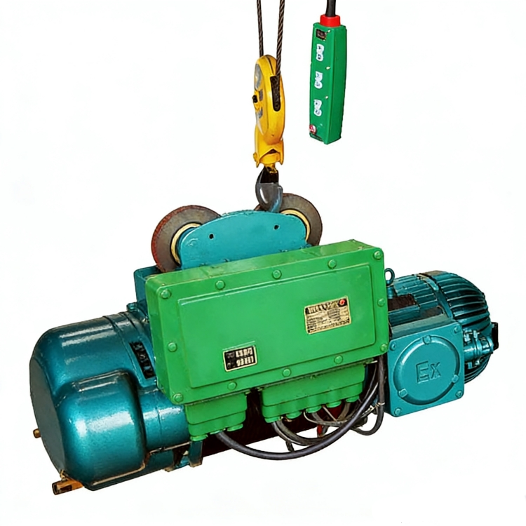 BCD 型防爆電動葫蘆:雙速鋼絲繩式,起重量 1-32t,起升高度 6-50m,工作級別 M4