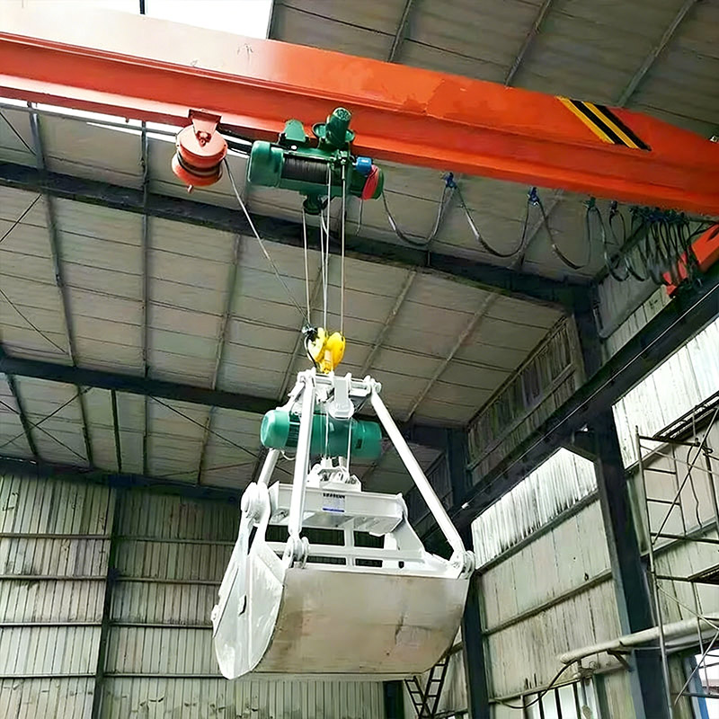 起重小車:沿主梁下翼緣軌道橫向移動。小車上的起升機構(gòu)通過鋼絲繩控制抓斗的開降,開閉機構(gòu)則控制抓斗的張開與閉合,以抓取和釋放物料。